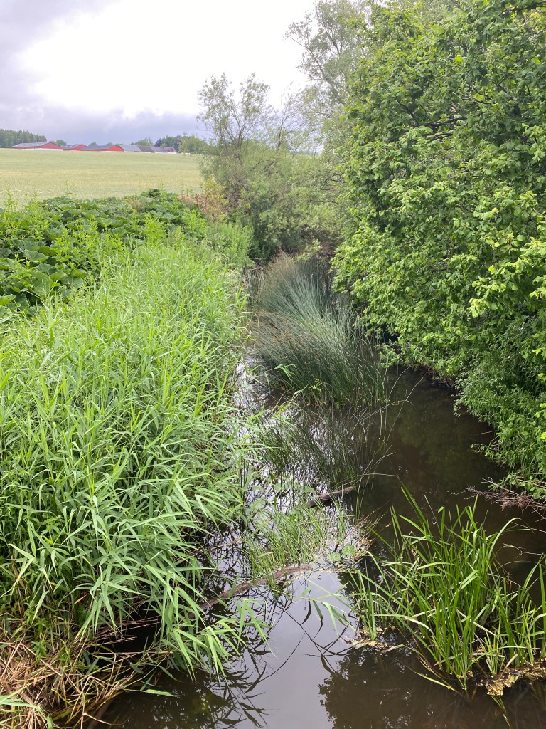 Maggie tar vi in. Hon behöver inte stressas av tumulten. Turkduvor och gråsparv söker efter mat på gräset åt stranden till. Det finns några få ringduvor. Svalorna rör sig i sjön. Över sjön glider en kärrhök.