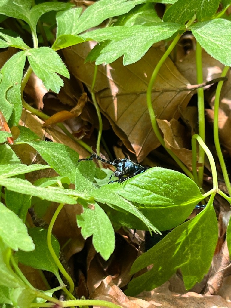 Vi är ständigt omgivna av olika organismer och vi märker dem om vi är uppmärksamma. Förhoppningsvis kan det väcka nyfikenhet och göra att vi vill veta mer. Om rovflugor och ekvårtbitare hade jag ingen aning innan jag såg dem, på samma sätt som majbaggarna som min käraste visade mig i Stenshuvud nationalpark, se inlägg En svart majbagge undervisar mig om ekosystem. Jag kan lika gärna nämna läderlöparen som jag upptäckte i kastanjen på jakt, se När livet under barken visade sig.