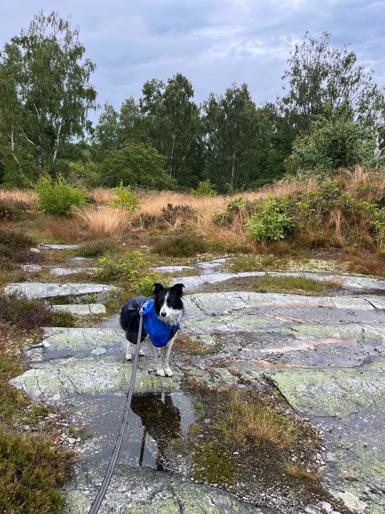 Så viker den av. Maggie har inte märkt något. När vi går vidare fångar hon vittringen och då blir det fart på henne. Vi får dra henne för att hon ska komma med.