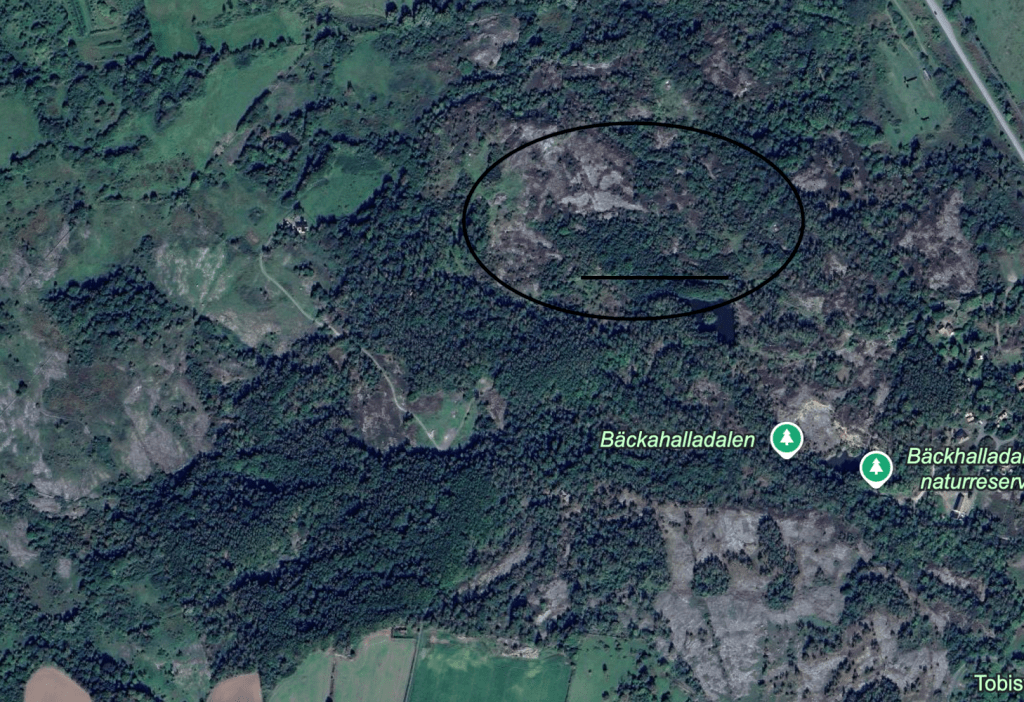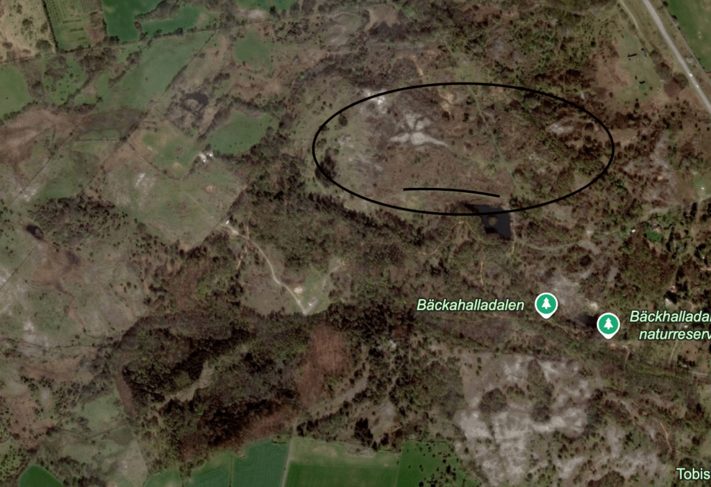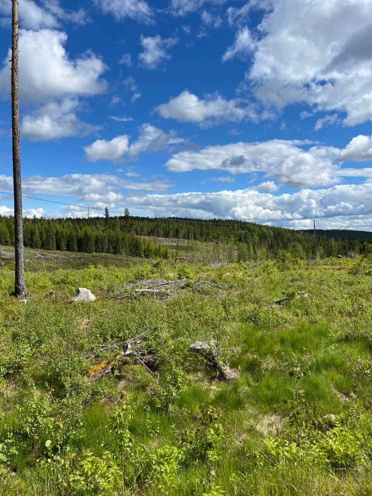 Vi går vid kalhygget. Det är här de ska bygga Climate Arena, berättar hon. De ska testa bilar här.