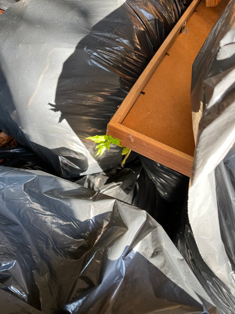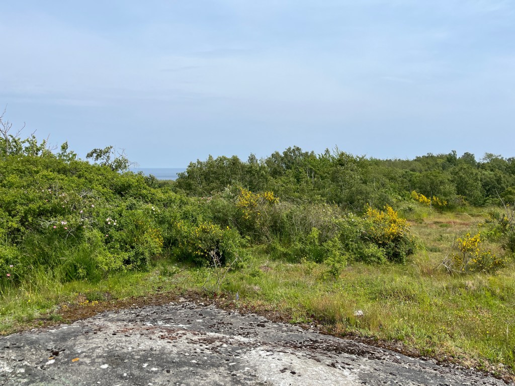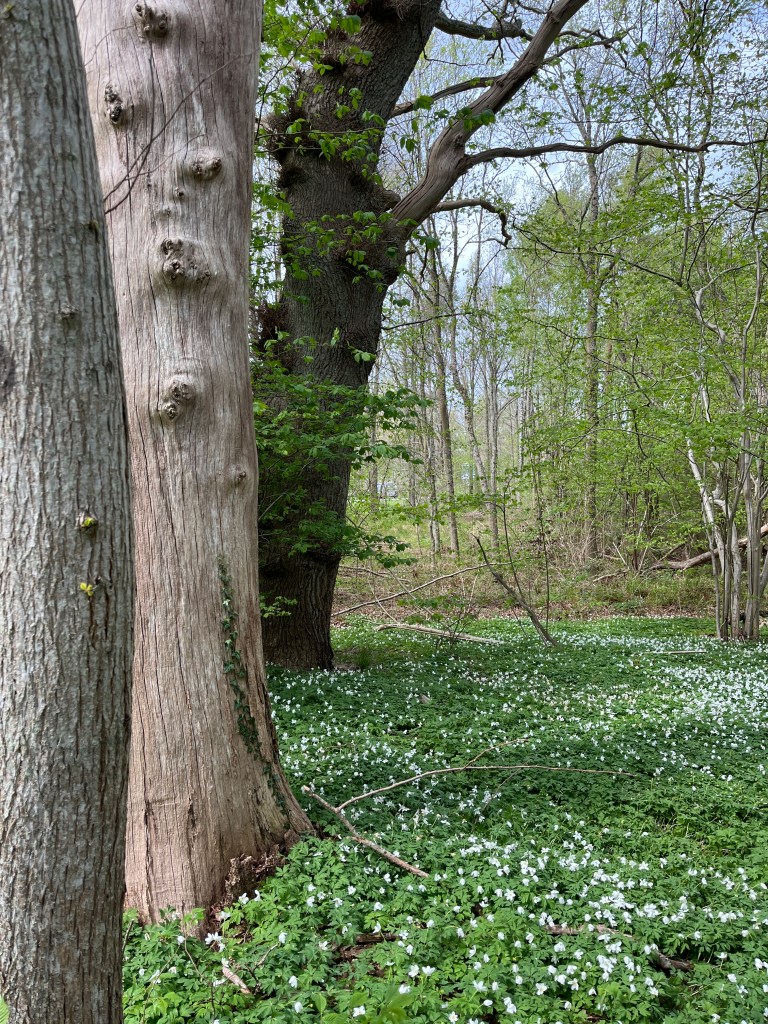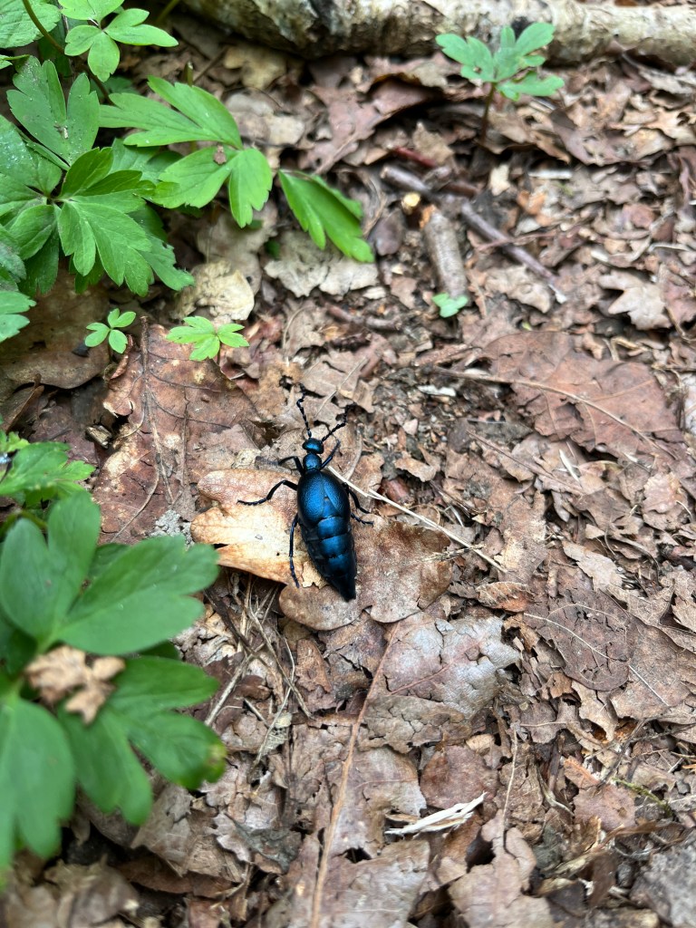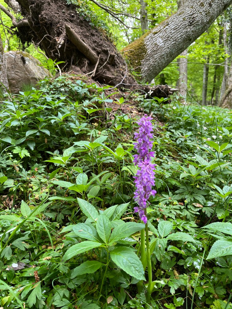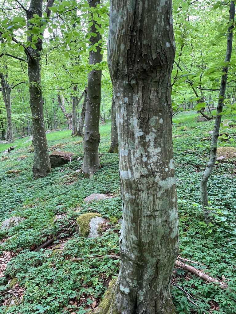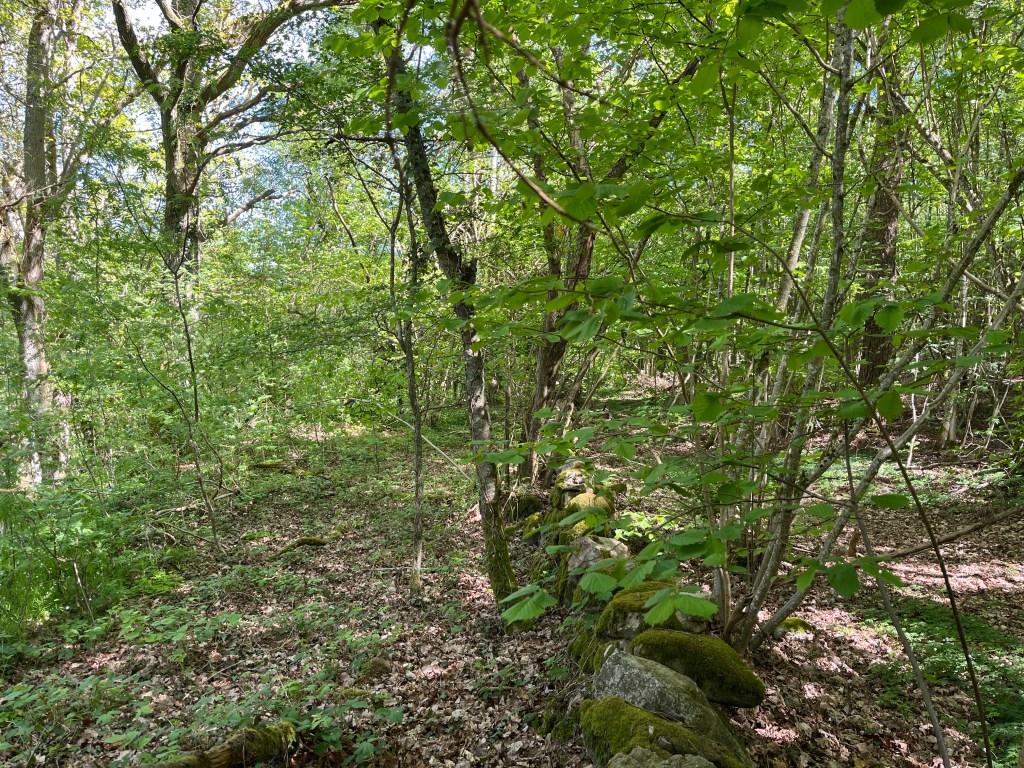 Vi går en annan väg tillbaka. Maggie nosar överallt helt i sin värld. Jag tror mig höra en taltrast, med sin upprepning av andra fåglars sång. Appen Merlin bird ID bekräftar min förmodan. Jag blir nöjd.