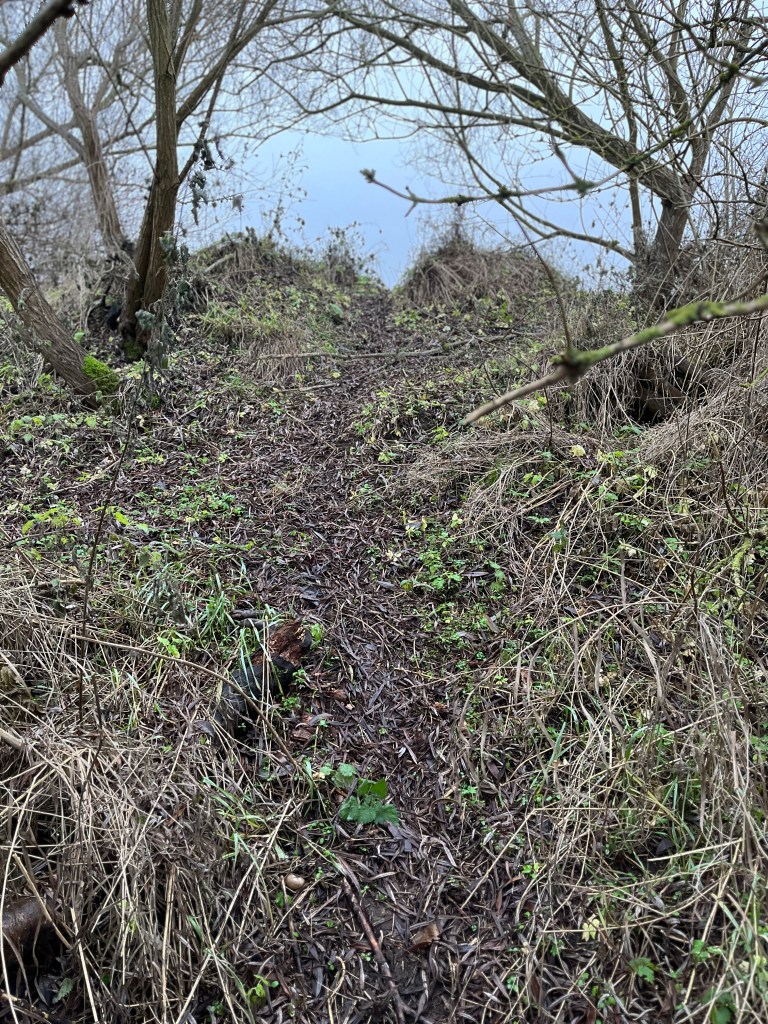 En vildsvinssteg ledde ned till ån. Så det var här de tog sig ned, tänkte jag och mindes inlägget Regeringen vill att skogen ska vara till för alla där jag begrundade hur de hade bökat upp på andra sidan ån.