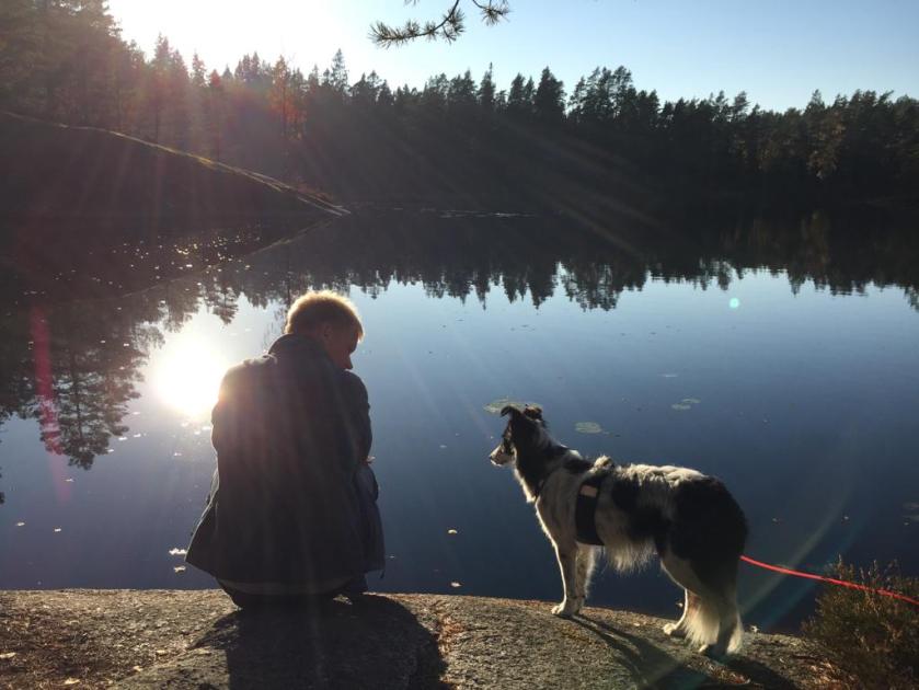 Ofta under naturpromenaderna med Maggie stannar jag upp och ser mig omkring. Intrycken överväldigar mig. Där ser jag ett träd (vad nu det heter), en ört (vad heter den då?), en stengärdsgård övervuxen med mossa (varför just här?). Då sätter jag mig ned på en sten eller en stam och stoppar min pipa. Maggie vill ha uppmärksamhet, så jag kastar runt lite hundgodis som hon kan söka. Med pipan tänd iakttar jag det runt omkring mig.