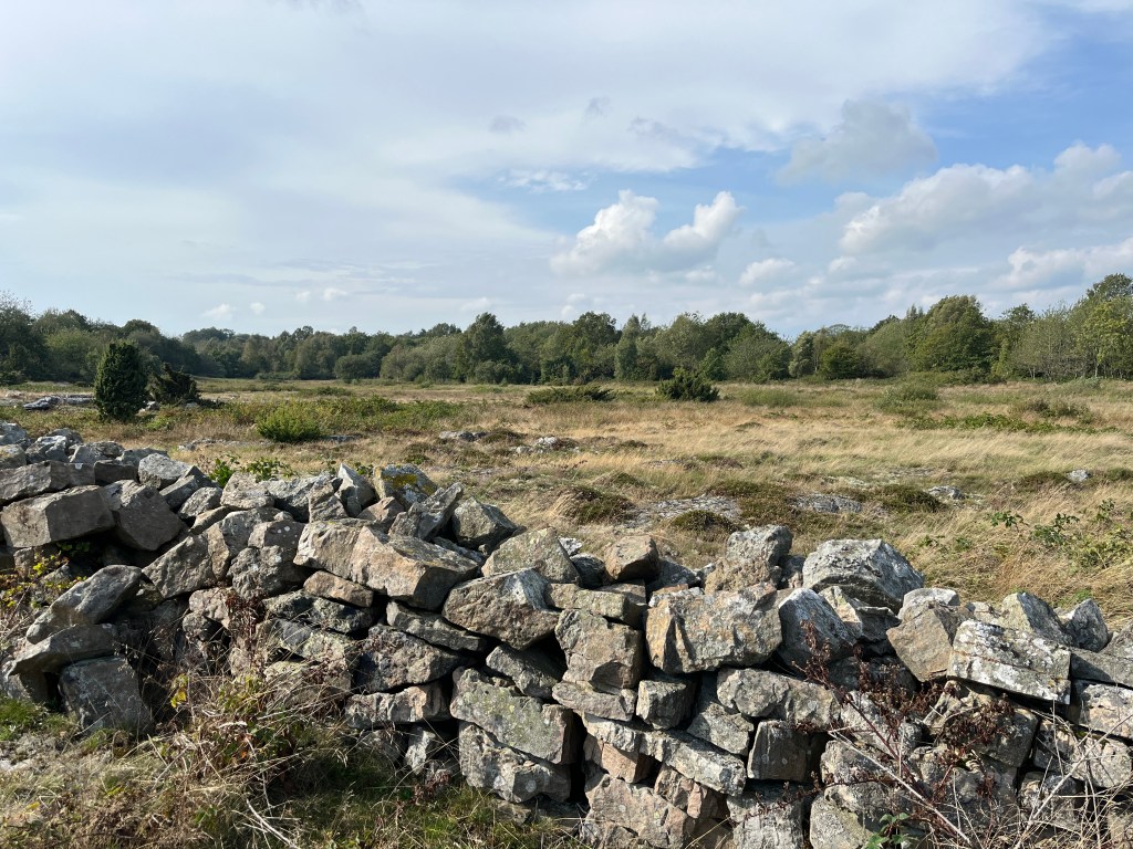 Ju närmre gångvägen mot Gröstorp jag kom desto smalare blev delen att gå på och den sista delen gick jag på stenvallen som har byggts upp efter år av stensamlande på åkrarna.
