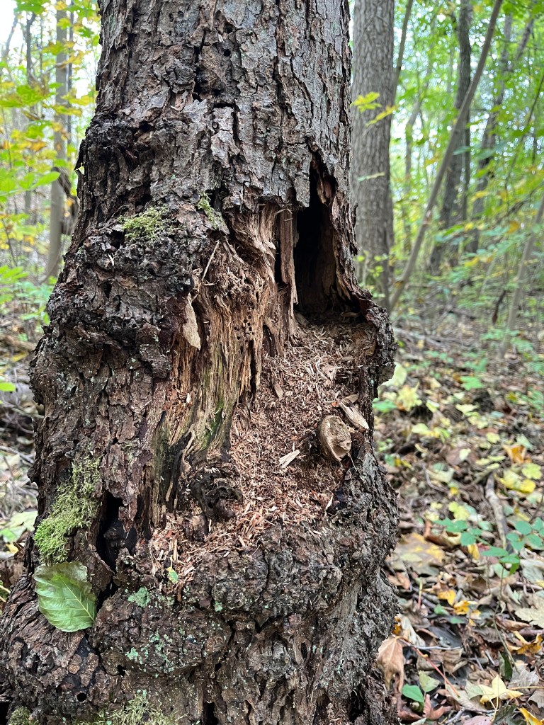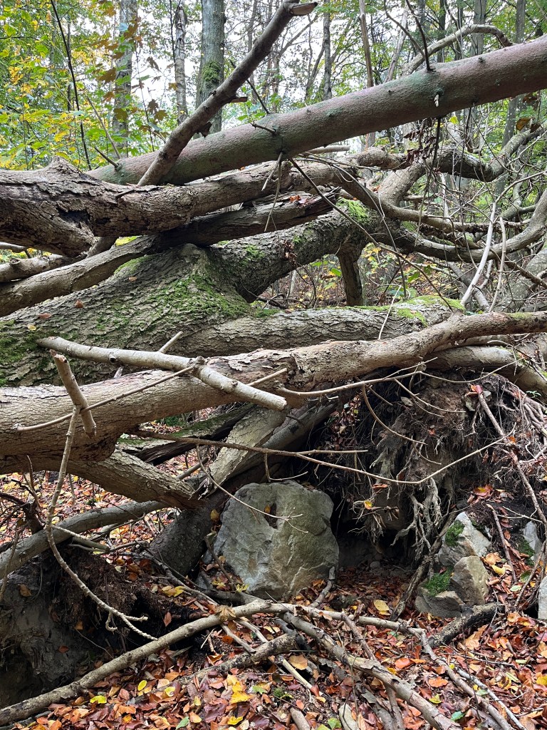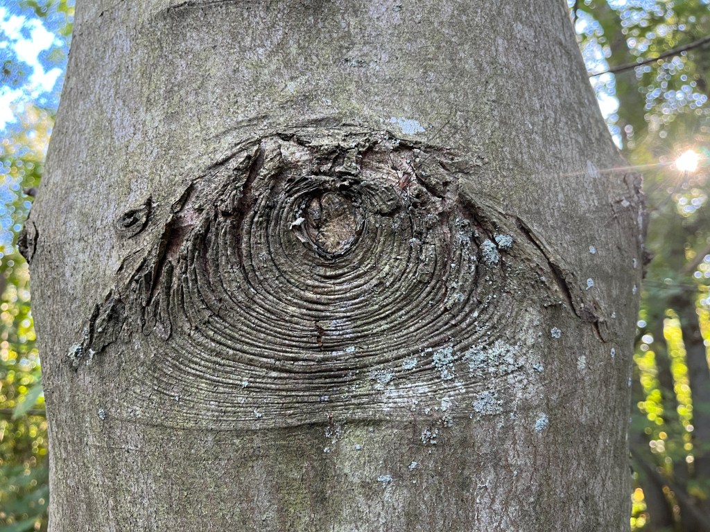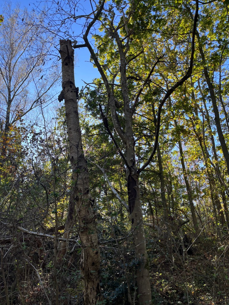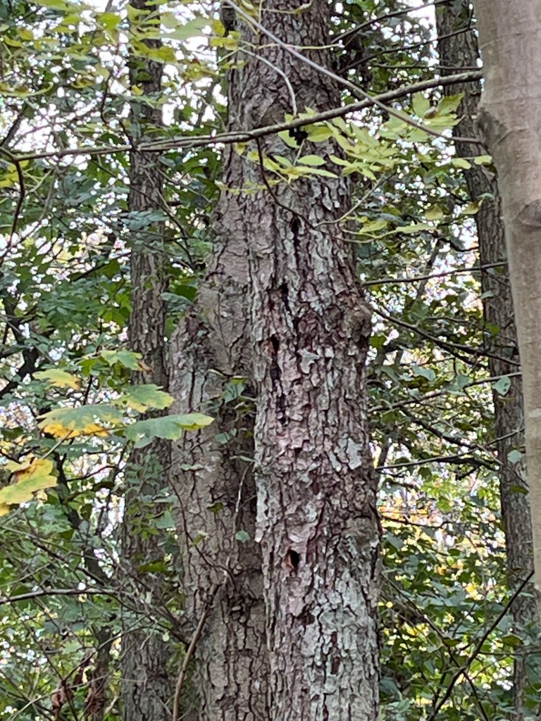 Bakom mig växte det väldiga träd. Jag trodde det var almar med sin djupt fårade bark. Jag tittade på dem och mindes ett videoklipp som jag hade tittat på i veckan, The Forest We Lost — And The One That Came Back (2025). I det berättar Adam Haritan om hur skogarna i New England har förändrats. Ett sätt att se på hur den förändringen är att undersöka gränsträd. På äldre kartor markerade man ägandegränsen med träd. Kanske var detta ägandeträd? begrundade jag.