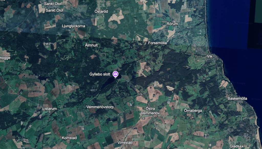 På västra sidan av Tommarpsån stod hon och nosade. Jag tog en bild söderut över fälten och skickade till min käraste för att berätta att vi saknade henne.